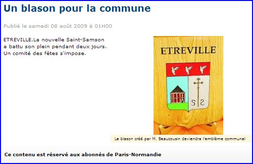 Article de presse Paris Normandie du 8 août 2009, sur le site du journal.