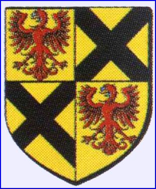 Écartelé: aux 1er et 4e d'or à l'aigle de gueules, becquée d'azur, aux 2e et 3e d'or au sautoir de sable.