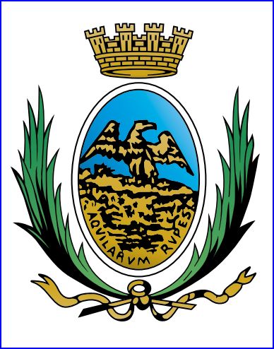 D'azur à l'aigle impériale d'or posée sur un rocher du même, mouvant des flancs et de la pointe et chargé en pointe de l'inscription « AQVILARVM RVPES » en lettres capitales de sable ordonnées en orle.