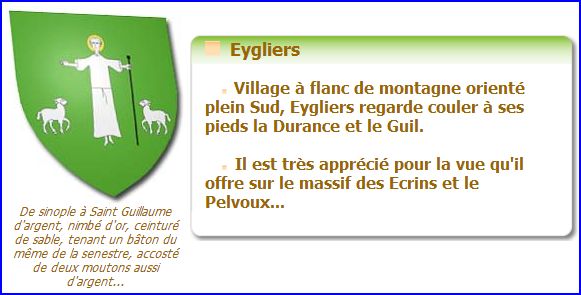 De sinople à saint Guillaume d'argent, nimbé d'or, ceinturé de sable, tenant un bâton du même, accosté de deux moutons affrontés d'argent.