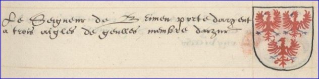 (1995) Écartelé: aux 1er et 4e d'argent à trois aigles de gueules becquées et membrées d'azur, aux 2e et 3e de gueules fretté d'argent.