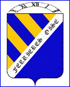 Taillé: au 1er d'or à trois bandes d'azur, au 2e d'azur plain; à la barre d'argent chargée de l'inscription « FERRIERES - OISE » en lettres gothiques de sable, brochant sur la partition.