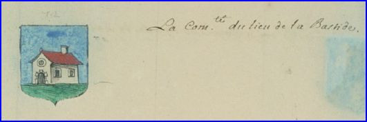 D'azur à la maison d'argent, essorée de gueules et ajourée de sable, sur une terrasse de sinople.