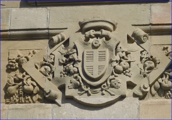 Blason sculpté sur une façade.