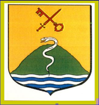 (2013) D'or au mont de sinople posé sur une rivière fascée ondée d'argent et d'azur; au serpent ondoyant en pal d'argent, langué de gueules, brochant sur le tout et surmonté d'une clé et d'une épée de gueules passées en sautoir.