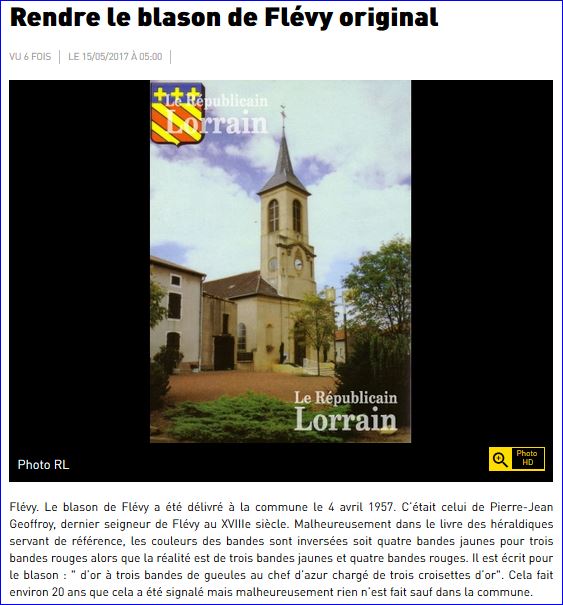 Article de presse Le Républicain Lorrain du 15 mai 2017, (site du journal).