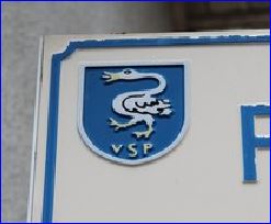 (fin XVIIe s.) D'azur au cygne passant d'argent, becqué, langué et membré d'or, soutenu de l'inscription « VSP » en lettres capitales d'or.