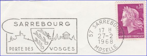(1269) D'argent à trois demi-ramures de cerf de gueules chevillées chacune de trois pièces, posées en bande et rangées en barre.