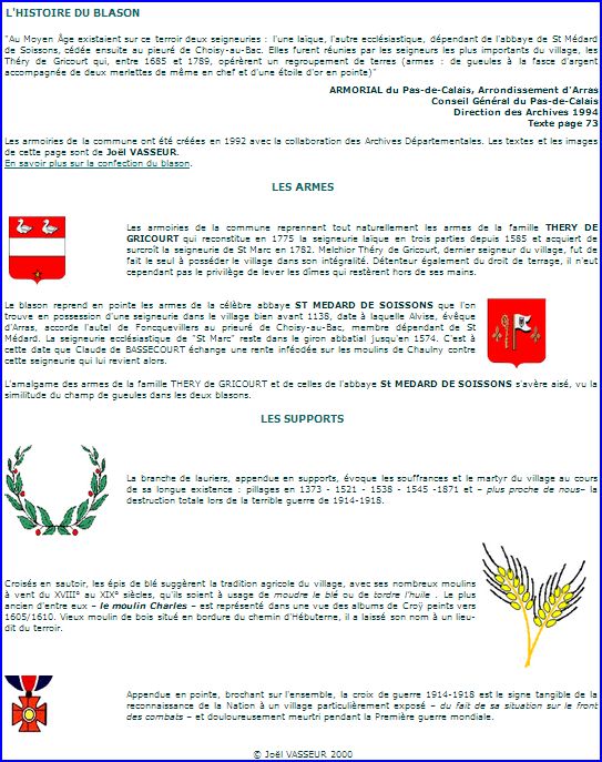 Histoire du blason, par Joël Vasseur, sur le site de la commune, 2013.