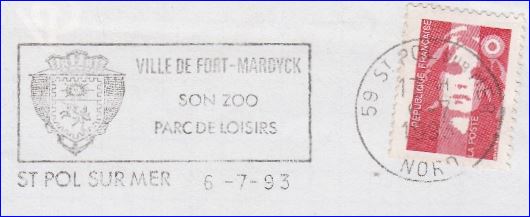 (1989) De gueules à la licorne cabrée d'argent, au chef cousu d'azur chargé d'un soleil d'or; le tout enfermé dans une bordure crénelée d'or.
