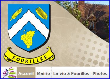 D'azur au chevron ondé d'argent accompagné en chef à dextre d'un épi de blé, à senestre d'un épi de maïs, et en pointe d'une grappe de raisin feuillée, le tout d'or.