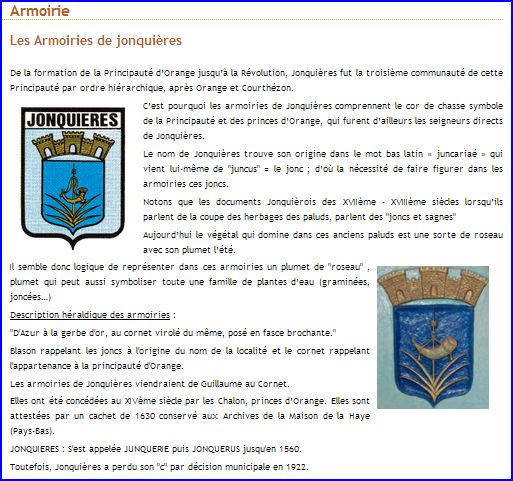 (1981) D'azur à la gerbe de jonc d'or, au cornet virolé du même posé en fasce appendu et brochant.